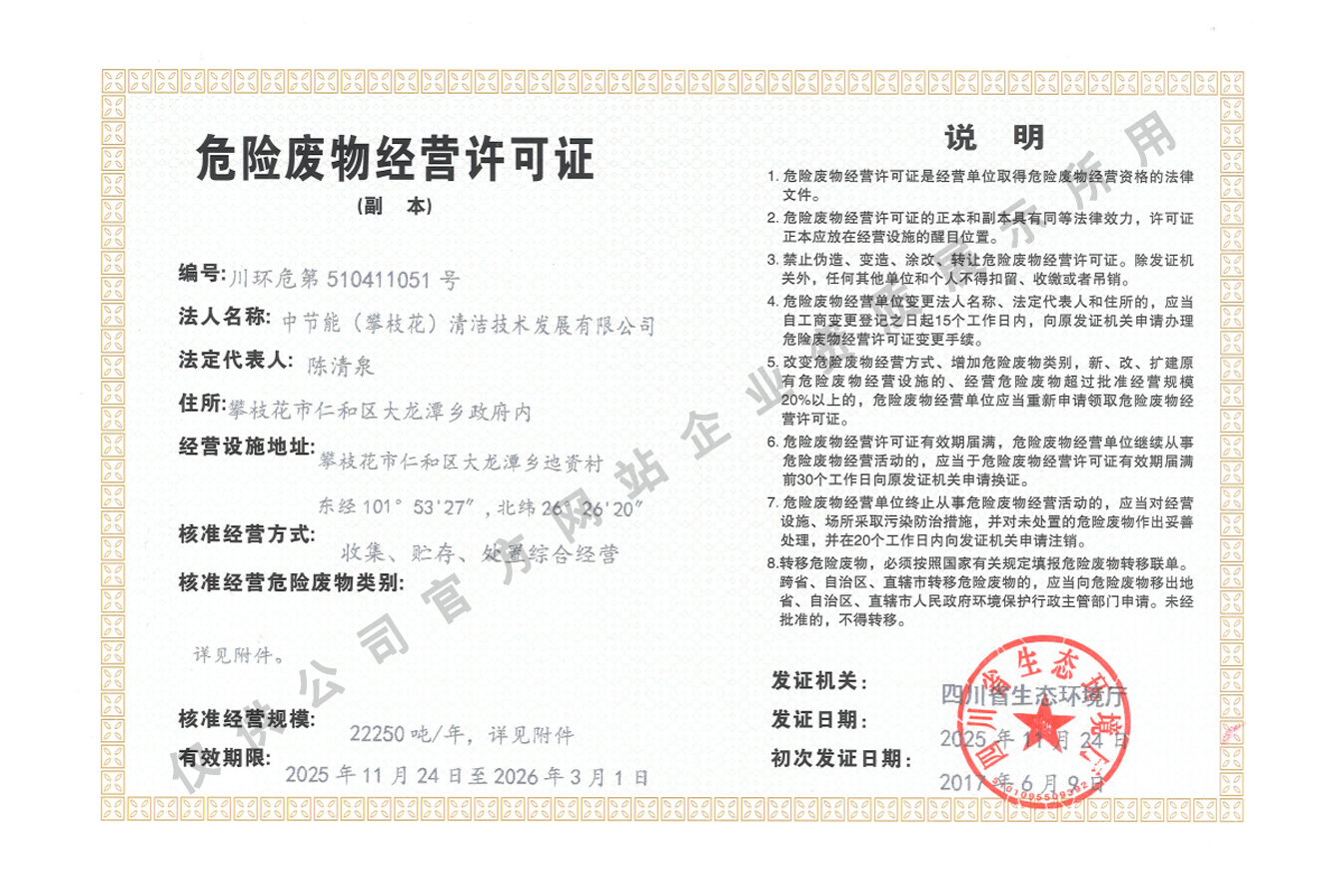 危險(xiǎn)廢物經(jīng)營許可證